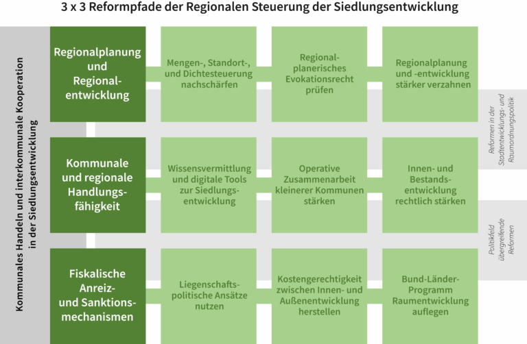 Langfristig orientierte Institutionen wie Zweckverbände oder Innenentwicklungsgenossenschaften stärken die interkommunale Zusammenarbeit und ermöglichen es, die Kommunen bei anspruchsvollen flächenbezogenen Entwicklungsaufgaben zu unterstützen und zu entlasten. So sollen verbindliche Arbeitsstrukturen geschaffen werden, die gleichzeitig eine Mehrbelastung der Kommunen verhindern. Aufgaben, die auf kommunaler Ebene regelmäßig nicht leistbar sind, können durch die Struktur identifiziert, adressiert und bearbeitet werden. Auch Investitions- sowie finanzielle und flächenbezogene Ausgleichsmaßnahmen können auf diesem Wege koordiniert erfolgen. Erfolgreich sind diese Strukturen vor allem, wenn sie auf gewachsenen Kooperationsräumen beruhen und aus einem gemeinsamen Problemdruck heraus entstehen.